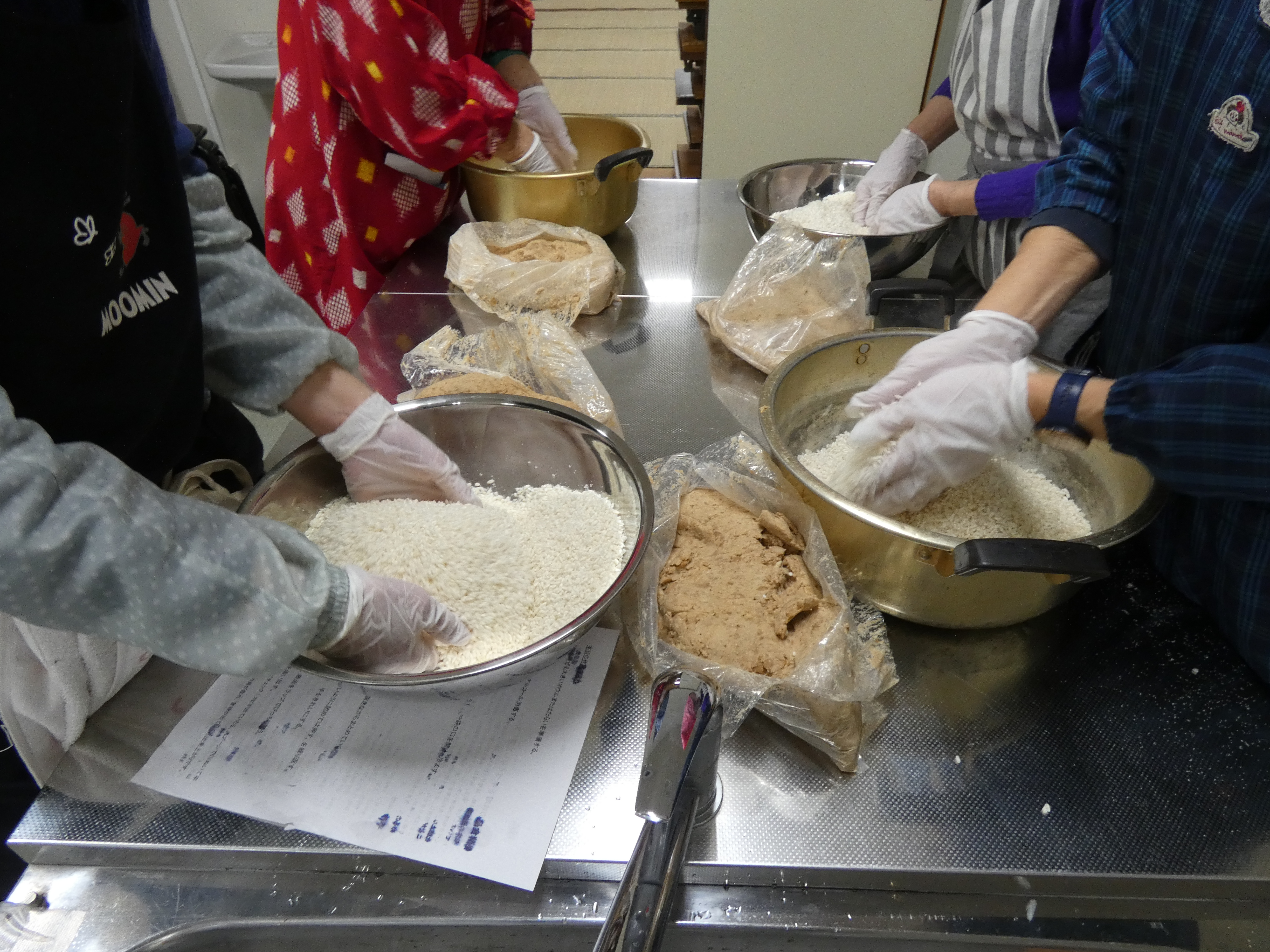 2月15日(日)16日(月) 味噌づくり教室 講 師:谷口味噌店 谷口さん 参加者:42名 今年も谷口味噌店さんにお世話になり、味噌づくり教室を開催しました。毎年キャンセル待ちもでるほど大人気事業です。今年は2日間の開催で親子連れなど総勢42名の方が参加して、大豆を潰したり、麹や塩を混ぜたりと体力のいる作業を体験しました。秋ごろにはコクのある美味しい味噌ができあがる様で、みなさんが楽しみにされていました!(^^)! 講師の先生が甘酒の試飲を用意してくださり、優しい甘味が身体に染みわたりました♪