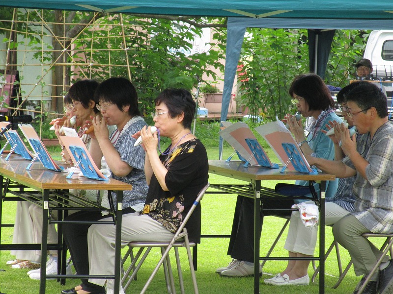 大西保江先生の指導のもと、練習を重ねています。耳馴染みのよい懐メロや童謡から話題の曲まで優しい音色が響きます。