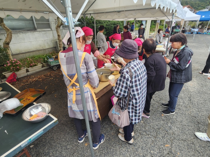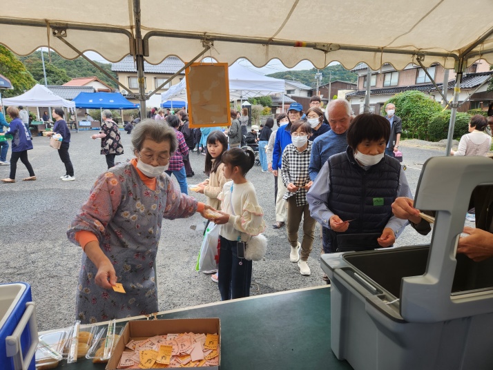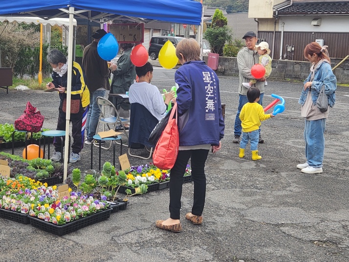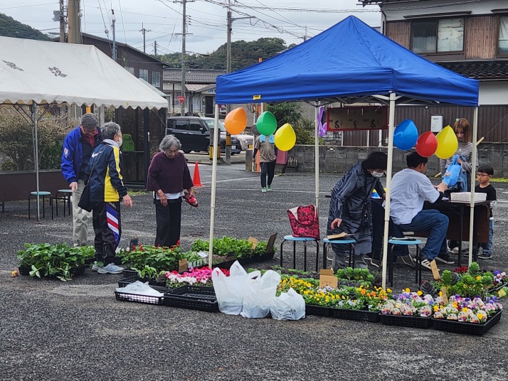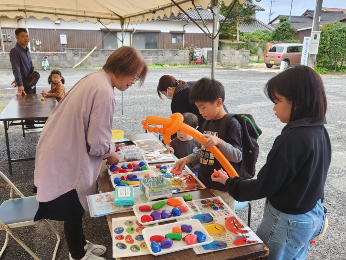 | 今年の文化祭駐車場イベントは、石のペーパーウエイト、スーパーボールすくい 花苗や、もち・季節の野菜販売、ポップコーン、喫茶コーナー つきたてのお餅と、とんちゃん汁の振る舞い等がありました |