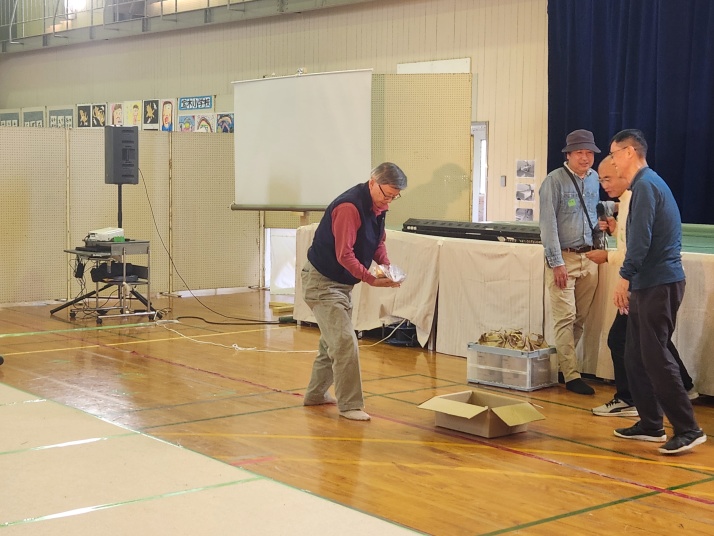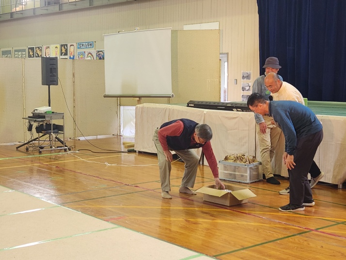 | 宝木地区公民館、最後は「大抽選会」です 受付時に名前を書いた抽選用紙を、抽選箱に入れているので、皆さん『自分の名前が 読まれるのでは』とワクワクしながら、発表をまたれていました |
