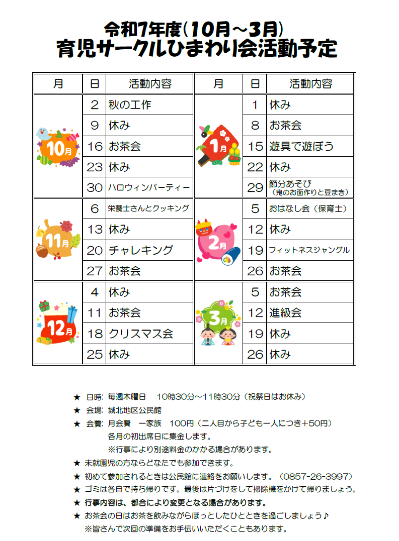 育児サークルひまわり会(子どもと大人のふれあい事業)