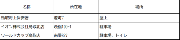 | 鳥取海上保安署 | 鳥取市港町7 | 協定に基づく避難場所 | 2.2 | |