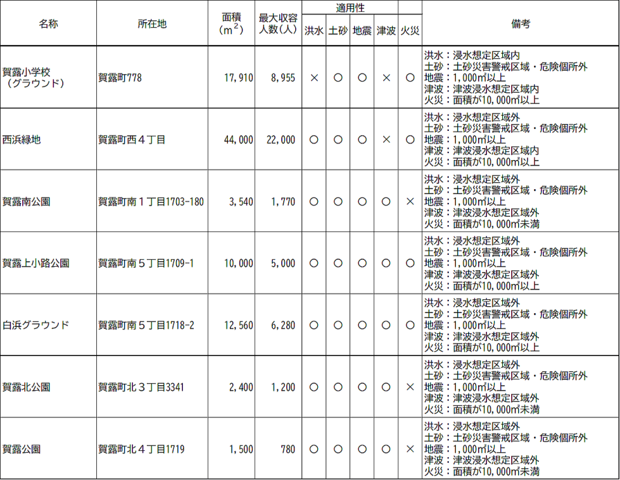 | 賀露緑地公園 | 鳥取市賀露町北4丁目 | 指定緊急避難場所 | 3.0 | 公園中央あたり |
