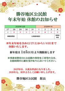 勝谷地区公民館で開催予定のイベント情報をお知らせします。詳しくは画像をクリックしてご確認ください。皆さまのご参加をお待ちしております