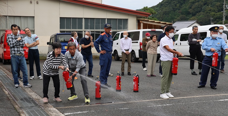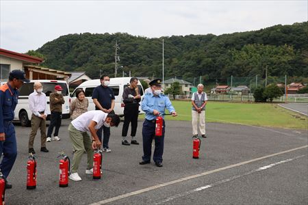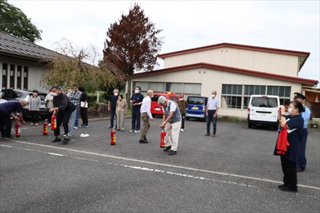 AM10:30~ 勝谷地区公民館にて避難訓練・消火訓練実施