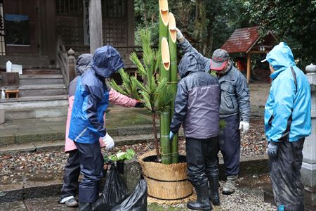2025.12.25 加知彌神社と勝谷公民館の門松を手作りで作成いたしました。