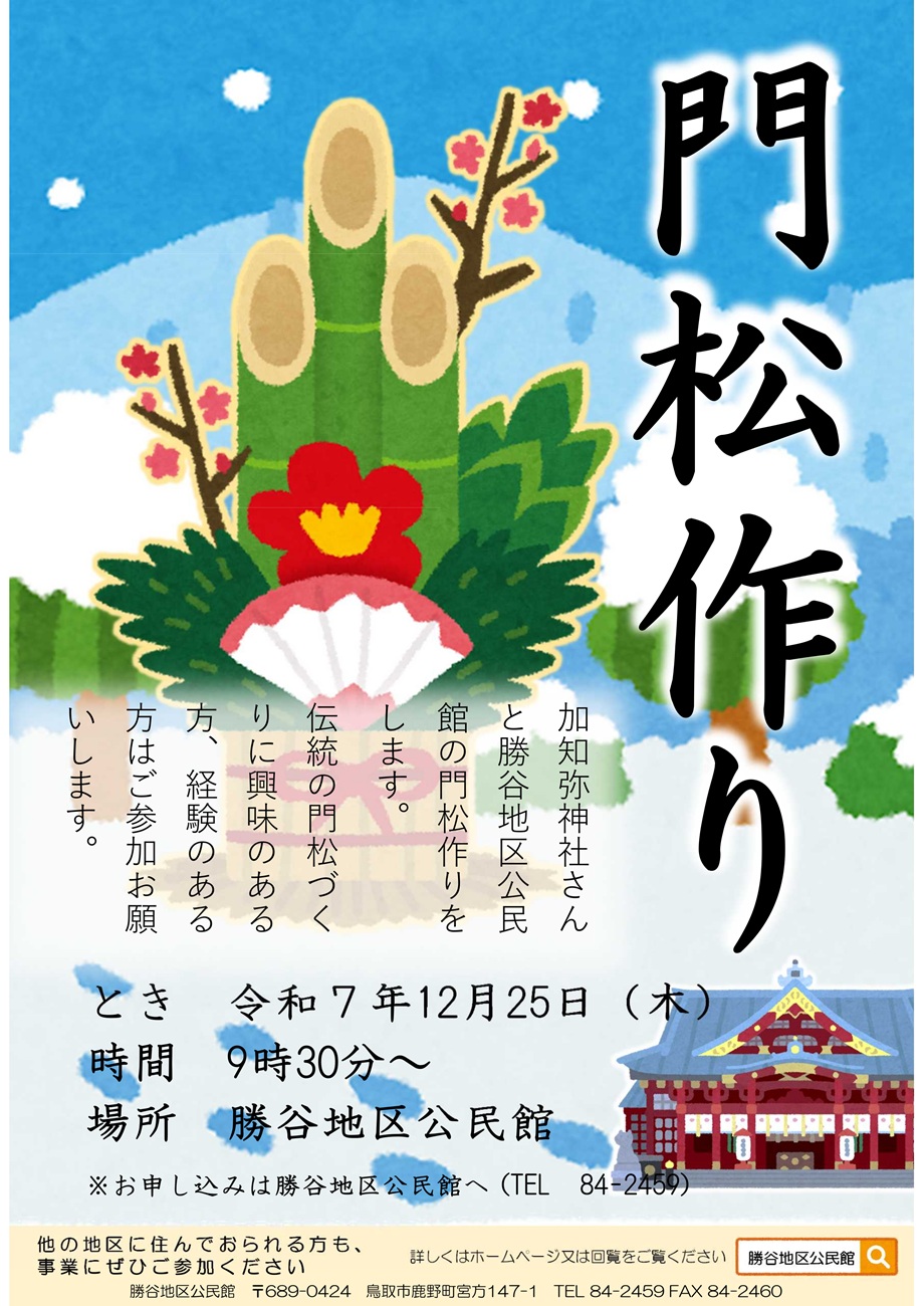 勝谷地区公民館で今後予定しているイベントの情報です。皆様の応募をお待ちしております。