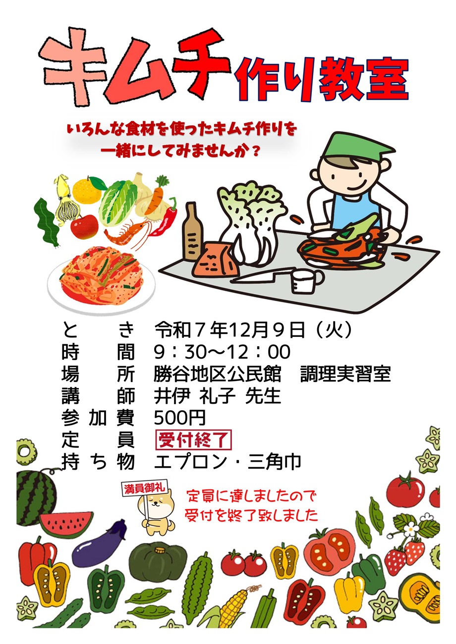 勝谷地区公民館で今後予定しているイベントの情報です。皆様の応募をお待ちしております。