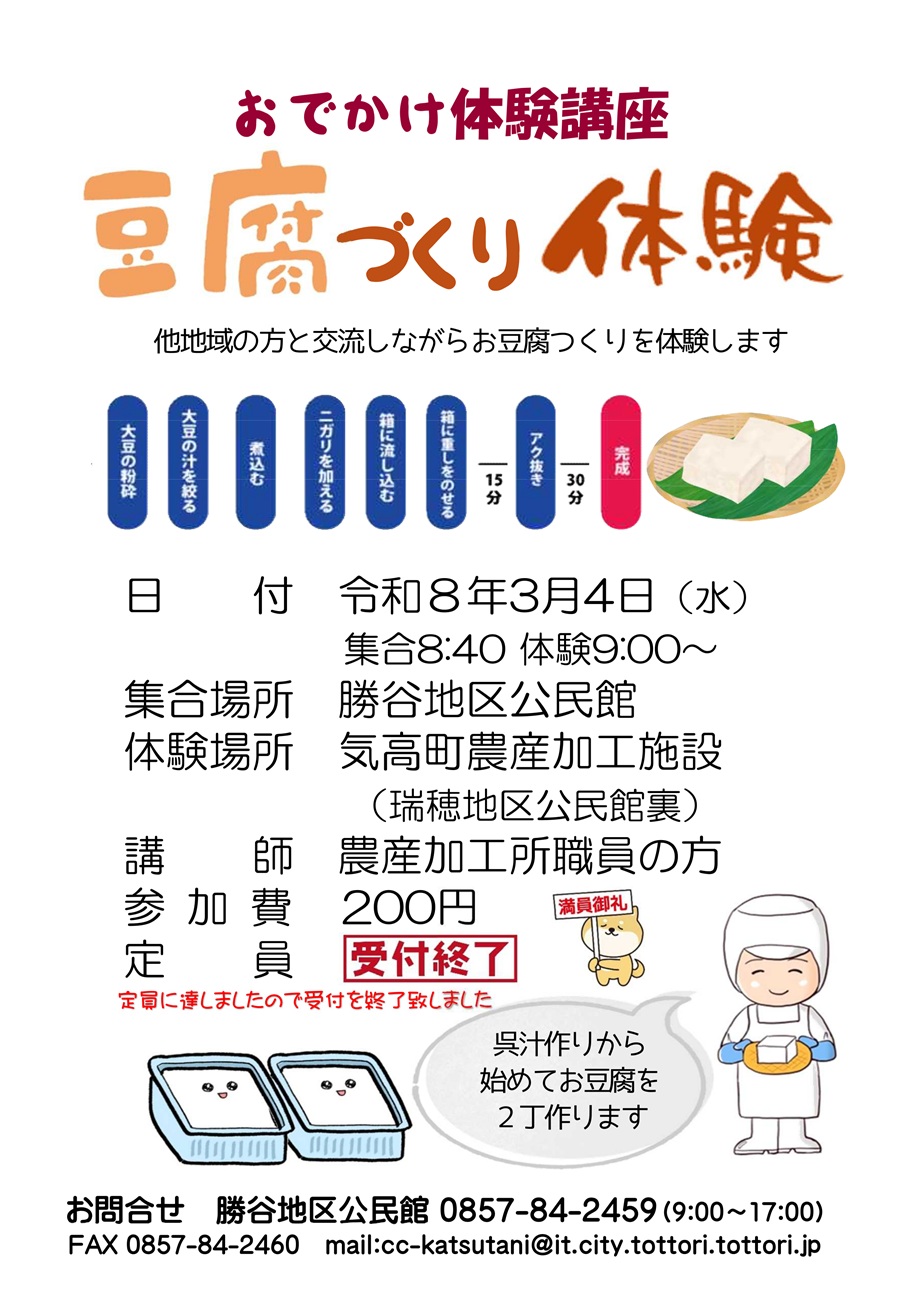 行事案内 豆腐づくり体験