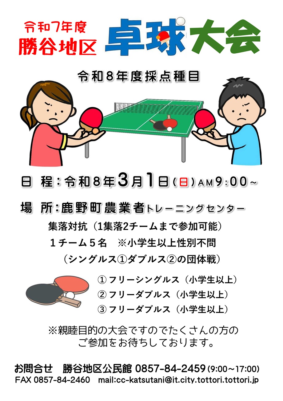行事案内 勝谷地区卓球大会