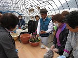 クリスマス・お正月に向けて(前田商会)前田卓哉さんを講師に現地にて冬の寄せ植え教室を行いました。先生に花の特徴など説明を教わってから自分好みの寄せ植えを楽しみました。