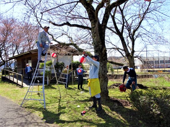 - 3月22日(水) 「桜づつみ公園」清掃&提灯取り付け作業