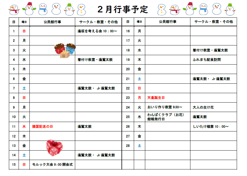 ☆2026年1月23日 公民館だよりR8.2月号 更新