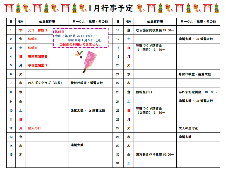 ☆2025年12月25日 公民館だよりR8.1月号 更新