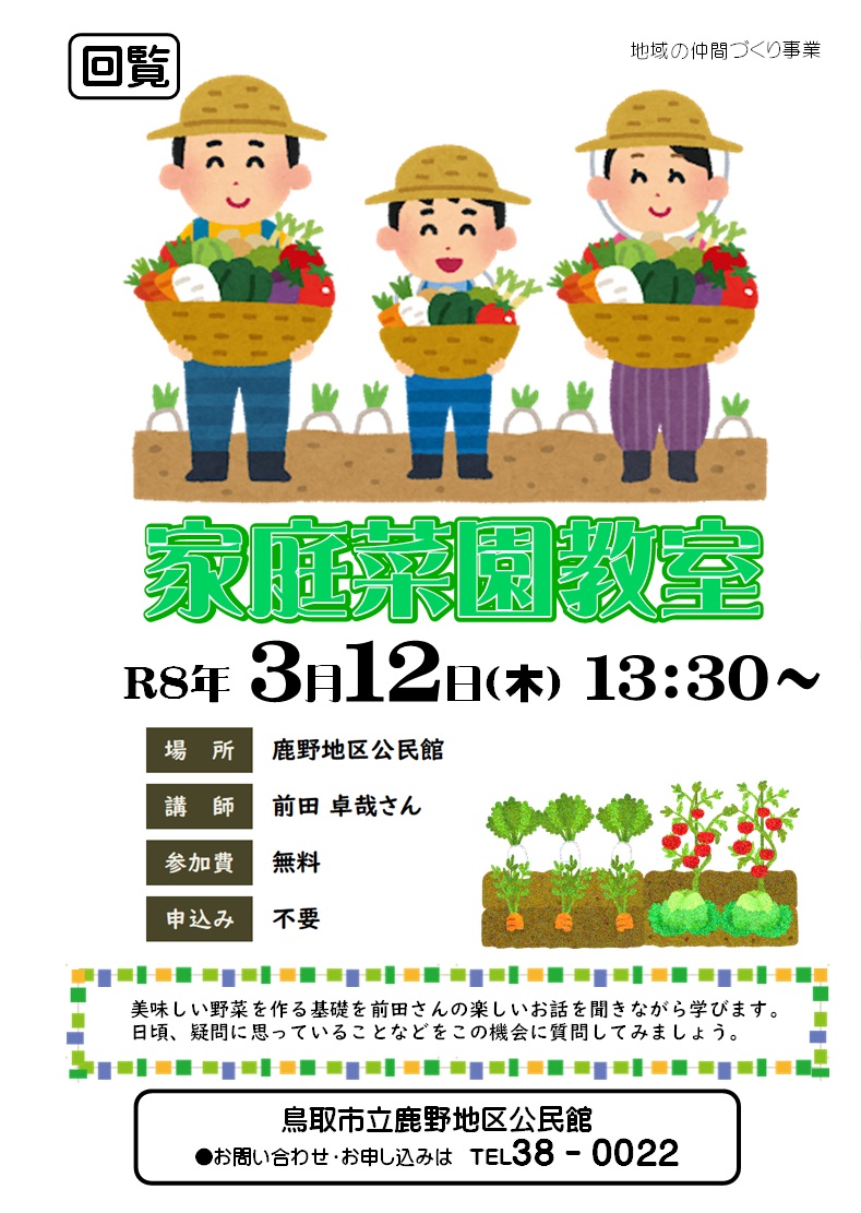 鹿野地区公民館では、さまざまな事業を行っています。どなたでも参加出来ますので、興味・関心のある講座があれば、お気軽にお問い合わせください。
