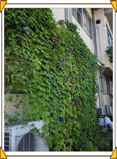 ⦿公民館に植えていた【朝顔】も復活しました。今年も、玄関脇と事務室の西側の2か所に植えていました。玄関脇の【朝顔】は、先週撤収しましたが、西側の朝顔は【緑のカーテン】になり、8月には花の開花は一休みしていたのですが、ここへ来て毎日たくさんの花が咲くようになりました。復活です。
