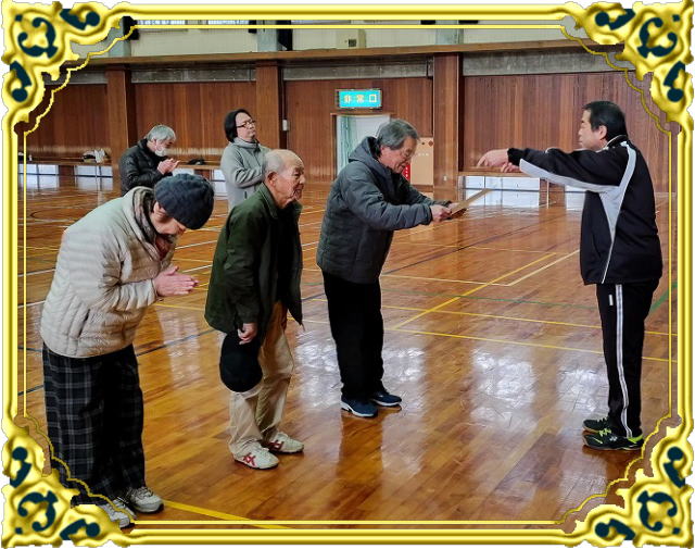 ⦿今年度最後の大会【カローリング大会】を、12月14日(日)に「鹿野トレセン」で行いました。大会には、大工町(6)下町(4)山根町(2)立町(2)上町(1)の5集落15チームの参加がありました。
