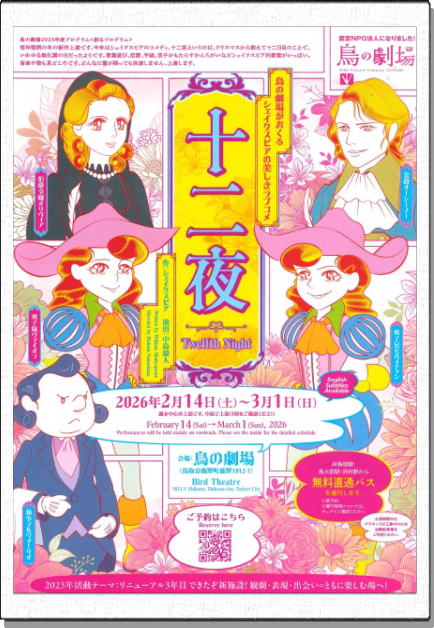 「鹿野まち普請の会」の会員さんの情報を中心に載せています。⦿鳥の劇場がおくる《シェイクスピア》の美しきラブコメディです。「十二夜」というのは、クリスマスから数えて十二日目のことで、いわゆる「無礼講の日」だそうです。