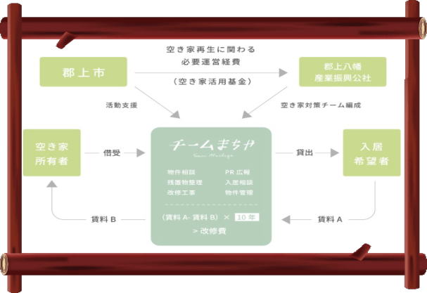 ●「チームまちや」では物件の借り受け・入居希望者への賃貸など空き家の再生に必要なすべての仕事に取り組んでいます。
