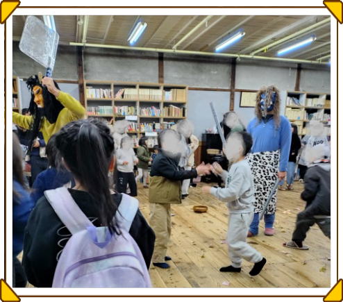 ●「鬼の出現」の前に、「節分」に関した「絵本の読み聞かせ」がありました。