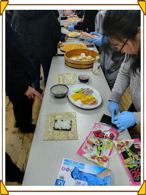●最後には「恵方巻き」を作り、「南南東」の方角を向いて、黙っていただきました。