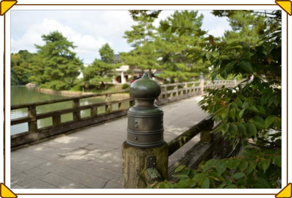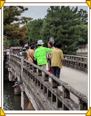 ●そうです。歌の場面で二人が渡っている橋が個の橋です。「宇賀橋」といいます。参加者の皆さんも、主人公になった気持ちで写真を撮りました。