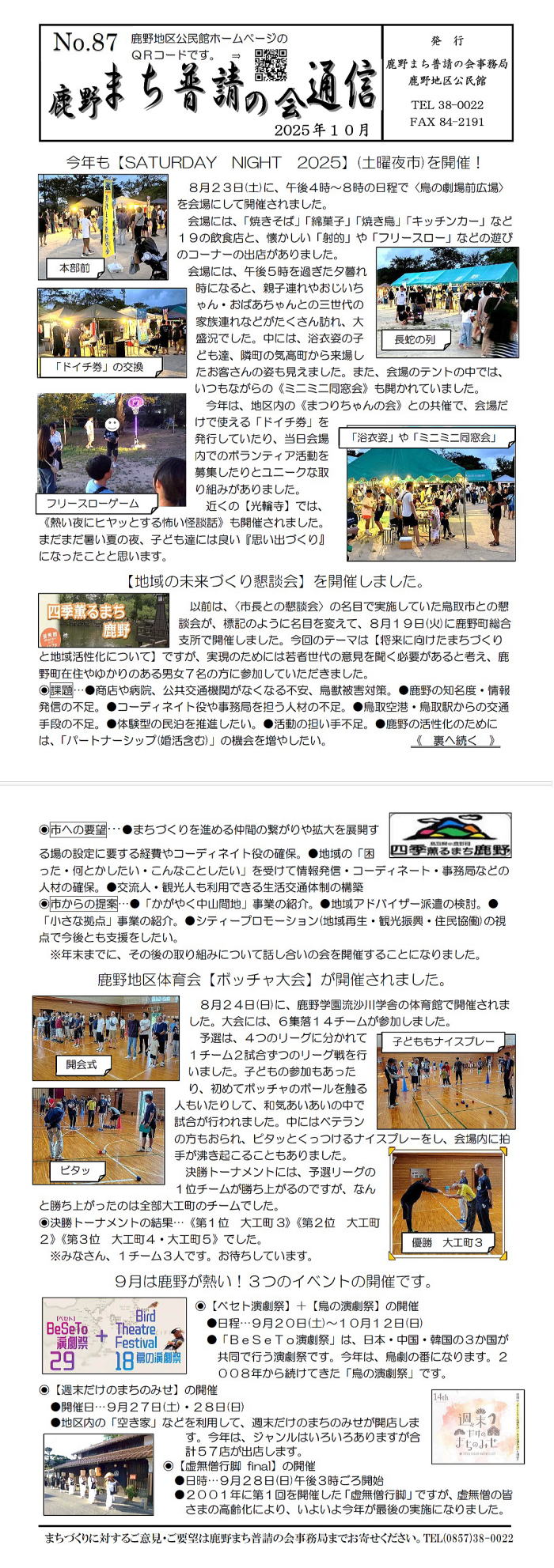 鹿野まち普請の会通信です。