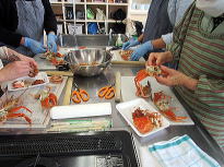 お昼は防災用のおにぎりと缶入りパンを食べ