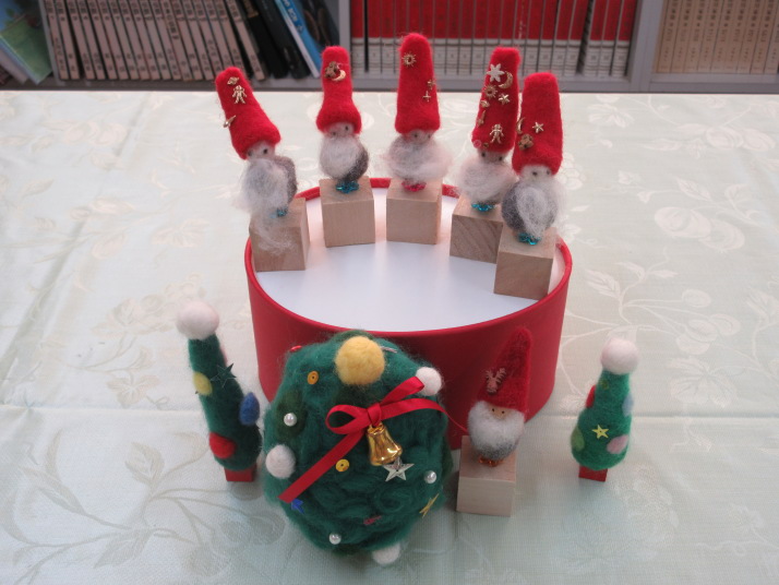 羊毛を針で刺すことで形を作る「羊毛フェルト」。先生の丁寧な説明を聞いて楽しみながらかわいいサンタクロースを作ることができました