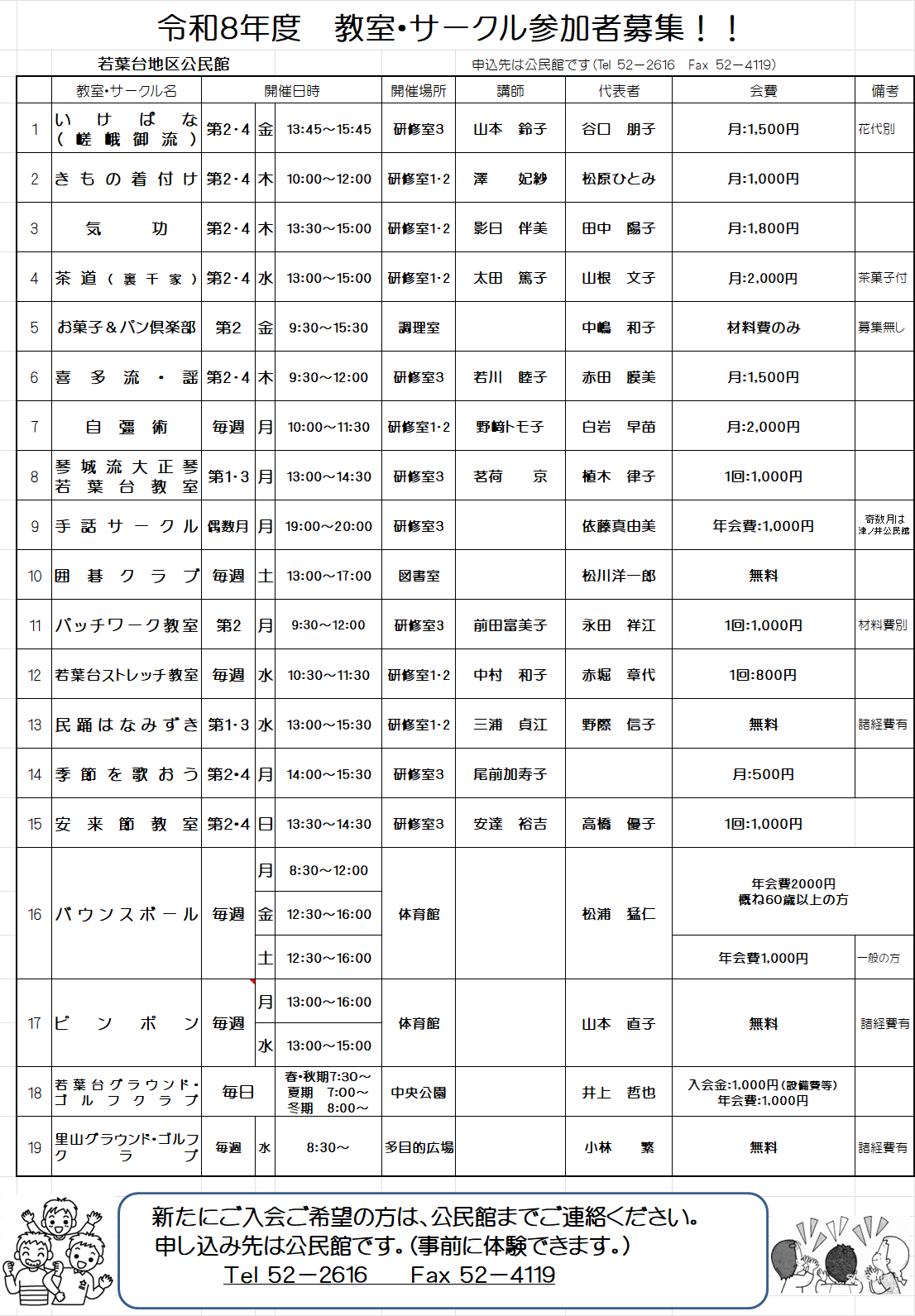 令和8年度 教室・サークル一覧