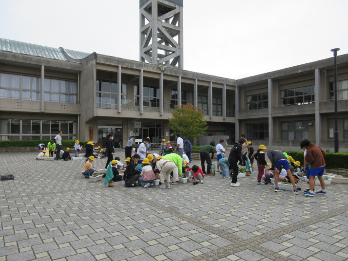 まちづくり協議会と小学校のみなさんでお花を植えました。