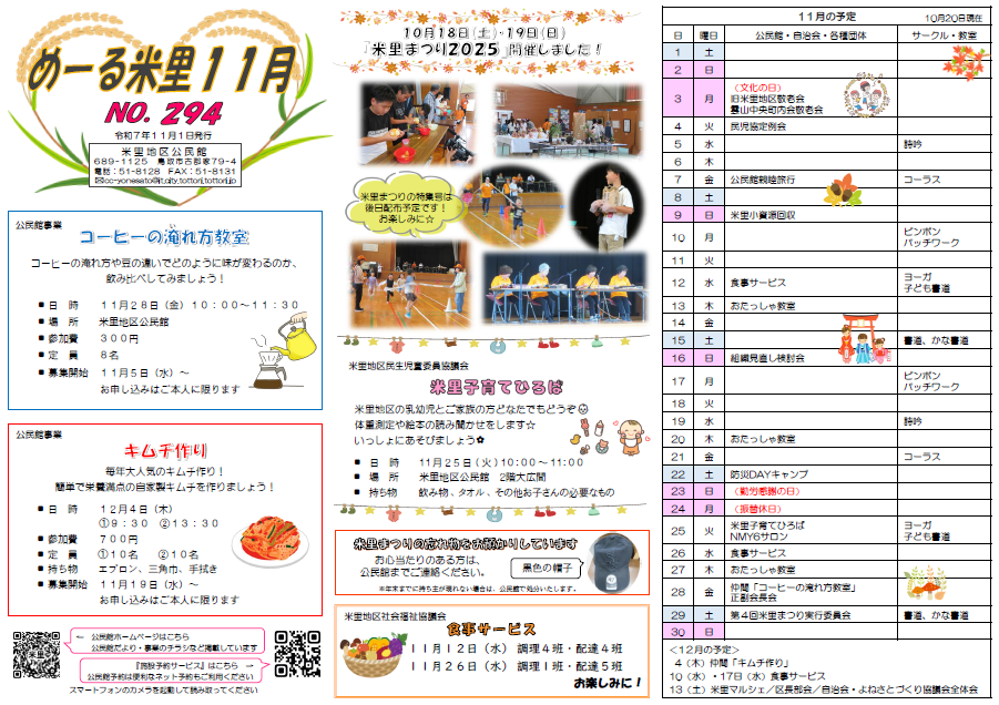 - ※事業に参加をご希望の方は事前に申し込み(米里地区公民館☎51-8128)が必要です。