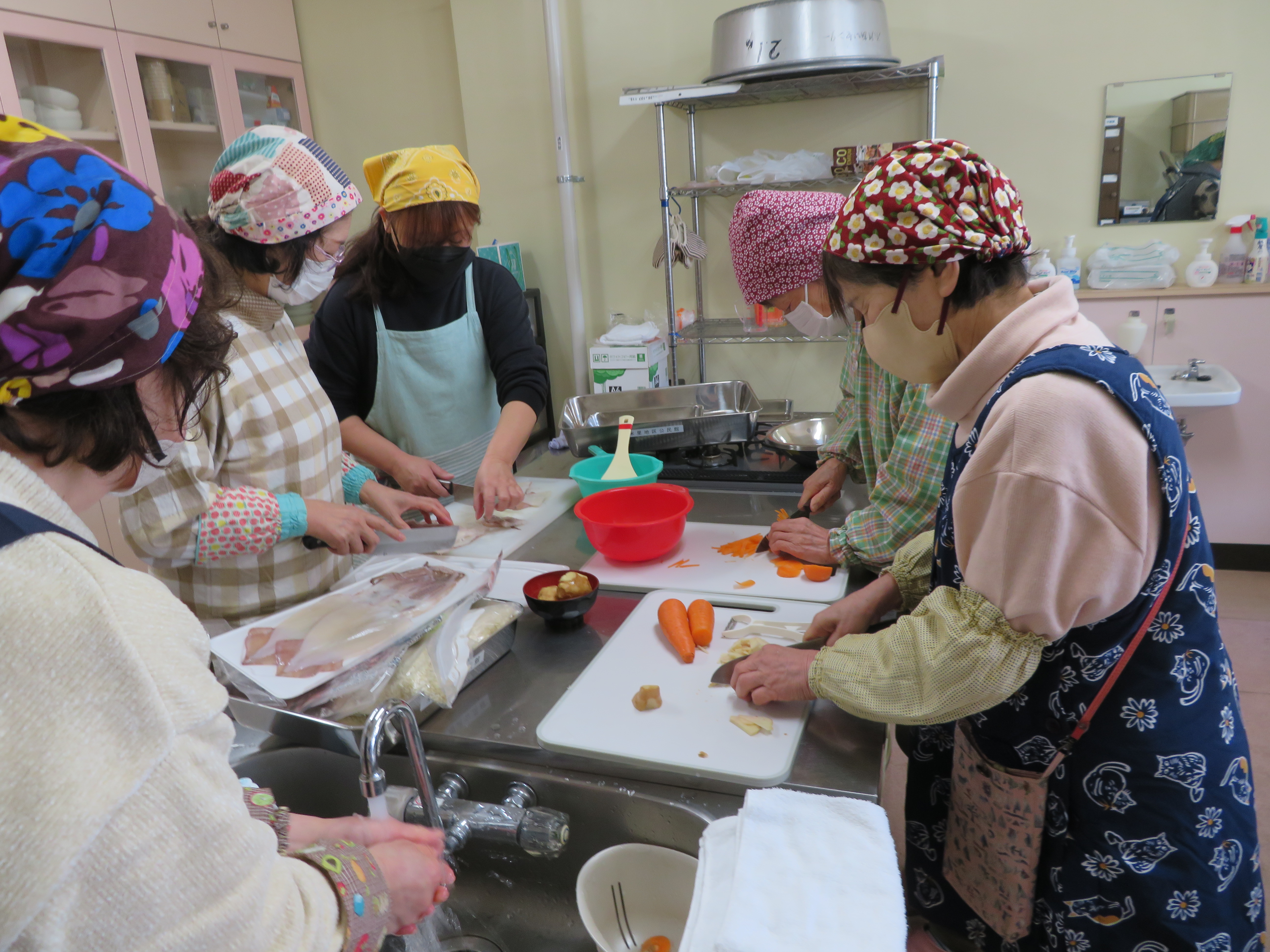 二つのグループに分かれて手際よく野菜を切りました。